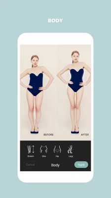 Cymera also excels in photo retouching. The app includes automatic face recognition tools to enlarge eyes, enhance smiles, and slim facial features. Additionally, it offers skin correction tools to brighten and whiten your skin, as well as a liquify feature for more detailed adjustments.