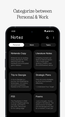 When you open Noting Notes, you’re greeted with just what matters: clean typography, soothing color choices, and a layout that feels intuitive from the start. Whether it's a quick reminder, a to-do task, a private thought, or a list of ideas, you can capture it with zero fuss. Want to make sure you don’t forget something? Use its built-in reminder system. Need to protect confidential notes? The private vault offers secure storage so only you can access the most sensitive content.