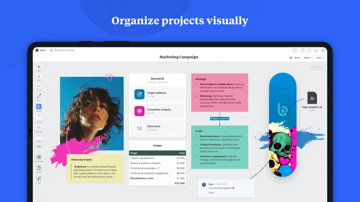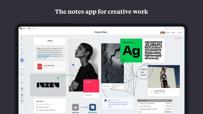 One of Milanote’s standout features is its collaboration support. You can invite teammates, share boards, and work together in real-time—making it a perfect tool for remote teams and creative studios. Writers can build character profiles and story arcs, designers can create inspiration boards, and marketers can plan campaigns—all in one place.